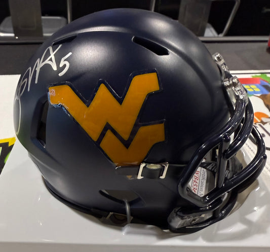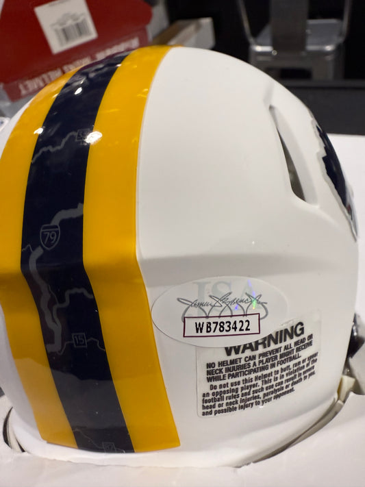 Pat White West Virginia Mountaineers Signed WVU Mini Helmet JSA Blue