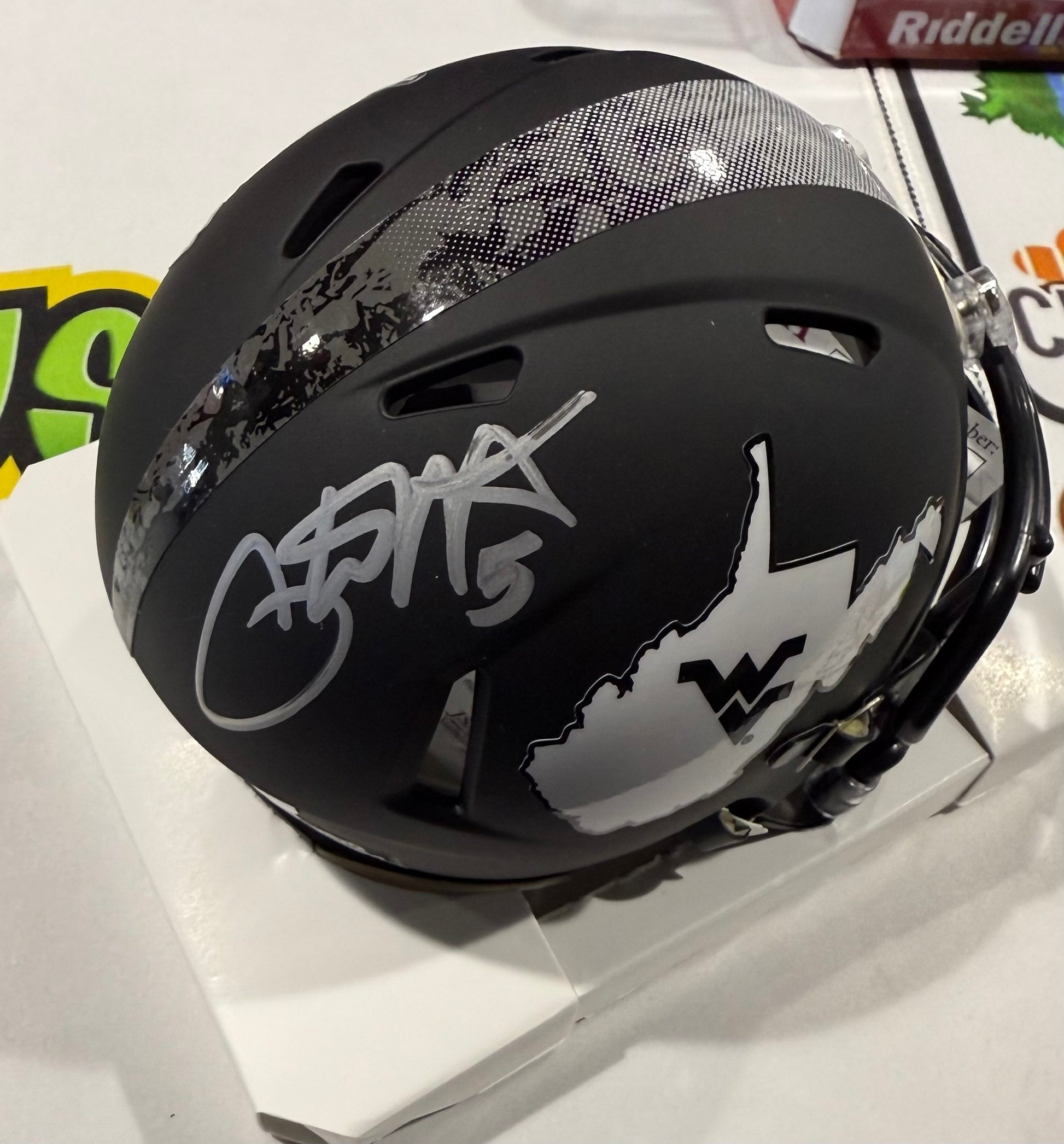 Pat White West Virginia Mountaineers Signed WVU Mini Helmet JSA Black