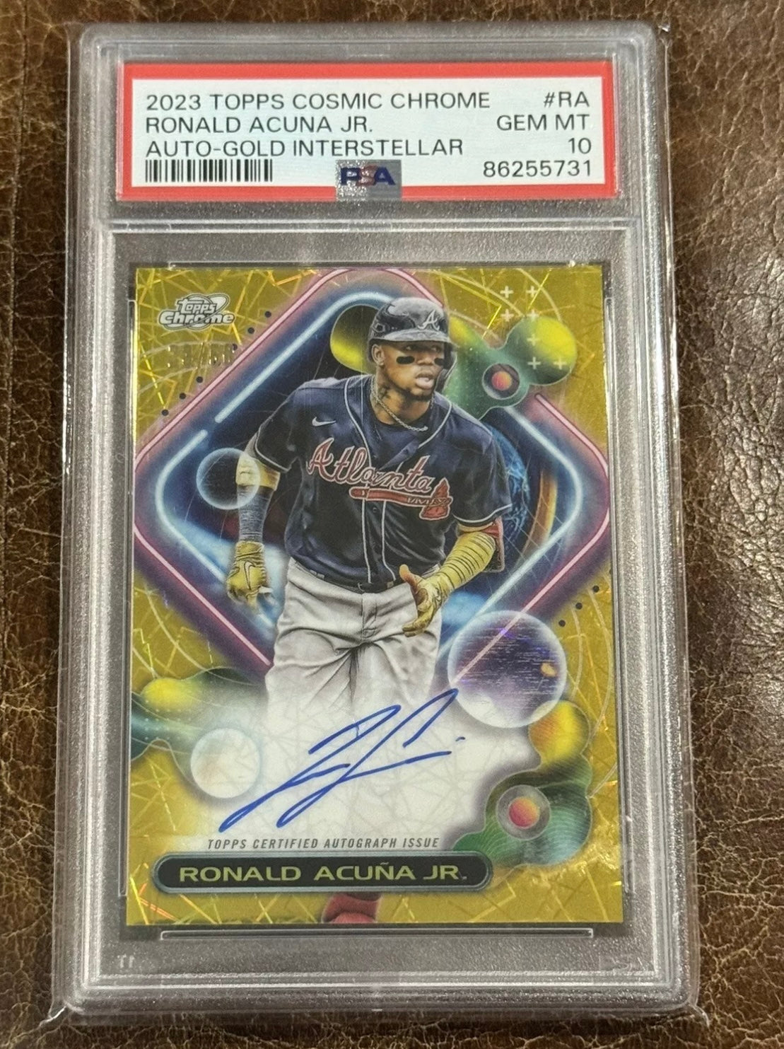 RONALD ACUNA JR. 2023 Topps Cosmic Chrome Interstellar Gold Auto /50 PSA 10